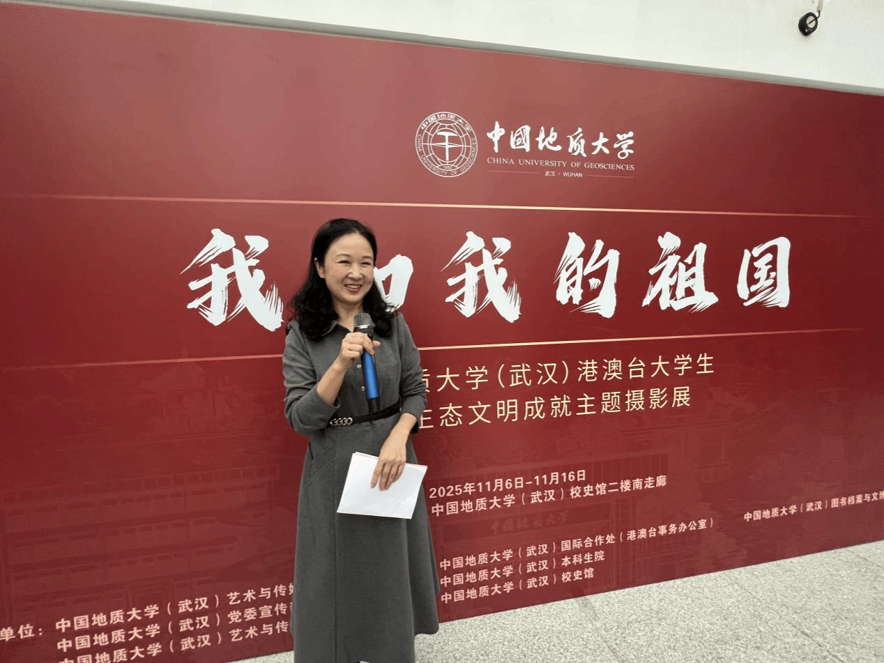 (通讯员 李敏 章奕)2025年11月6日下午15时,中国地质大学(武汉)“我和我的祖国”港澳台大学生祖国生态文明建设成就主题摄影展在中国地质大学(武汉)校史馆正式开幕。国际合作处处长、港澳台事务办公室主任关庆锋,图书档案与文博部部长帅斌,党委宣传部副部长吴仁喜,本科生院副院长高艳丽,图书档案与文博部副部长刘治国、艺术传媒学院副院长张梅珍、华中师范大学新闻传播学院刘震副教授及澳门彩票有限公司足球网上投注