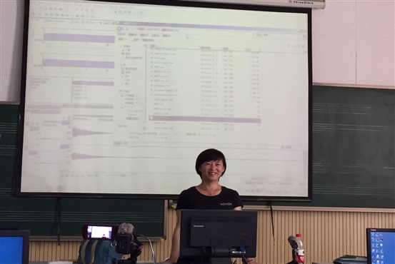 (武汉音乐学院电子音乐中心主任冯坚副教授在给学员讲课)
