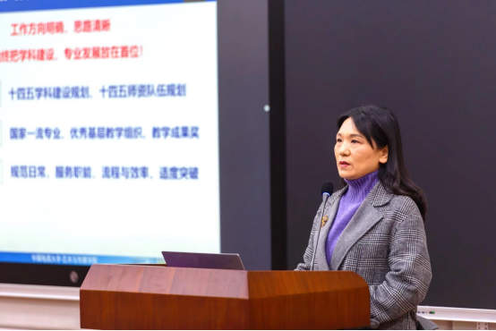 2022年工作报告、财务工作报告。他同时传达了王焰新校长在2023年新学期工作布置会上的讲话摘要。随后从工作设想、学科建设、平台建设、师资建设、重点突破、对标与对接、工作重心、目标展望等八个方面,谈到了他对学院发展的设想。