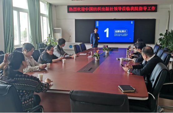 华长印社长首先详细介绍了中国纺织出版社的情况,并就出版社的特色和突出优势做了重点说明。与会老师与华长印社长、朱昭霖编辑就学科建设、项目报批、成果出版及教材建设等方面的内容进行深度了交流。最后,何清俊院长对华长印社长一行的到访指导表示感谢,会议在热烈的交流气氛中圆满结束。