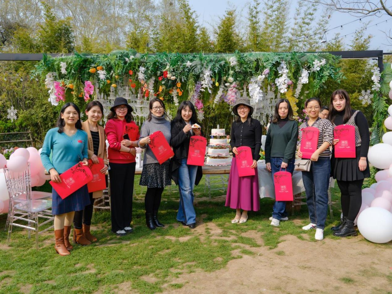 春游活动的一个焦点是“过集体生日”。上半年过生日的老师们一起切下了蛋糕,并获赠学院分工会准备的生日礼物,一条丝巾。在春日午后的阳光下,老师们的笑容都很灿烂。本次活动大家在轻松自由的氛围中领略了优美的景色,促进同事间情感交流,使学院教师团队更有凝聚力和向心力。