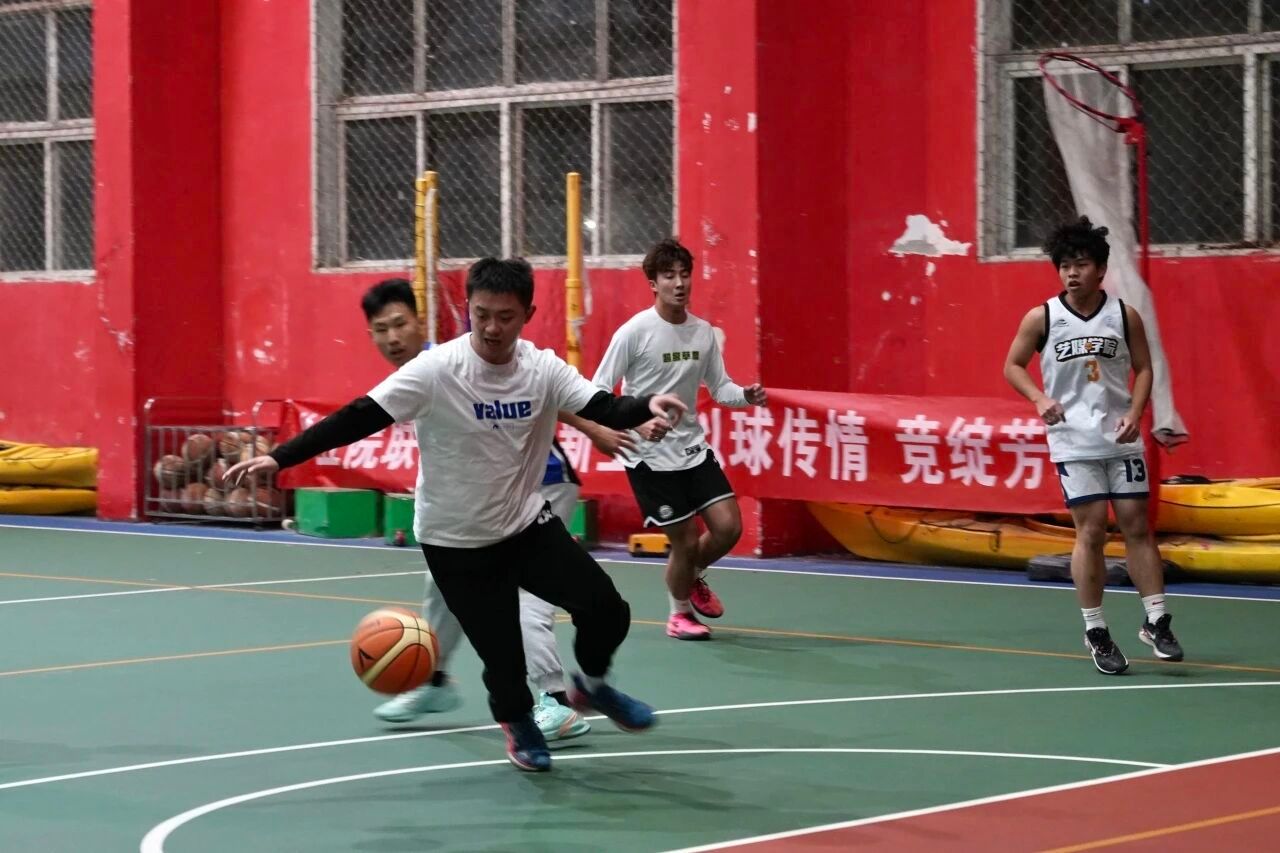 男篮与公共管理学院二队展开巅峰对决。前两节双方比分胶着,艺媒队员凭借默契配合与顽强防守紧咬战局,每一次突破、抢断都点燃全场热情。