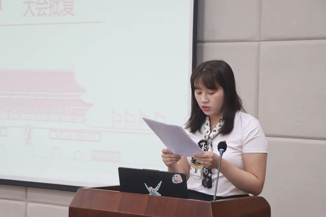 团委书记单湉艺老师宣读《关于同意召开澳门彩票有限公司足球网上投注-买足彩