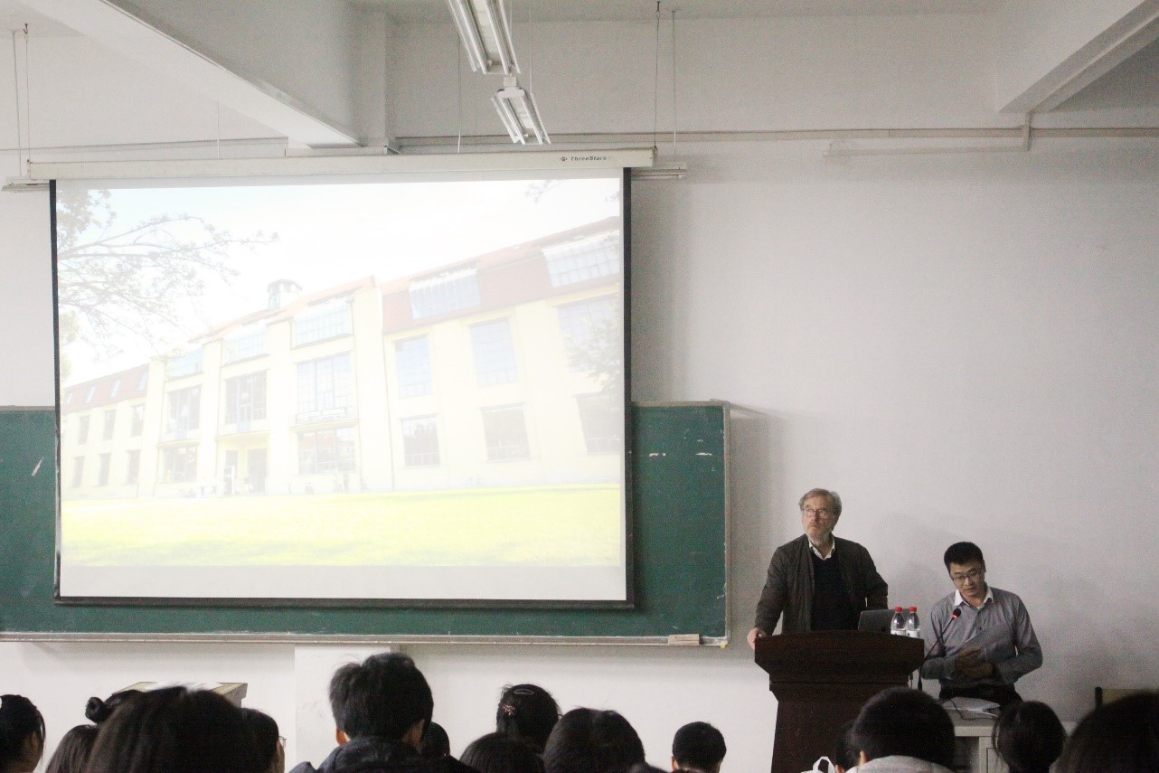 讲座开始,刘军老师首先向同学介绍了此次讲座嘉宾格纳德(Siegfried Gronert)教授,格纳德教授系德国C4级教授,包豪斯大学终生教授,包豪斯设计学院前任院长,“德国设计与设计史协会”会长。