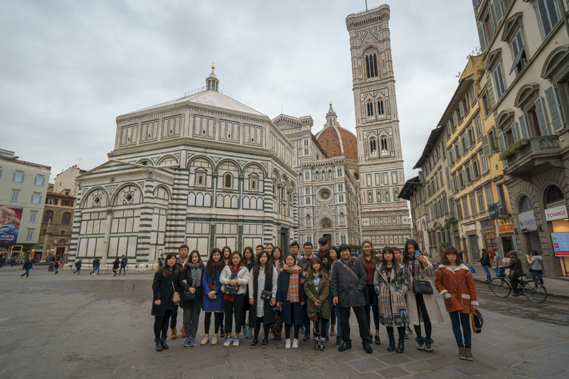早9点48分,访学团在马林老师的带领下经但丁婚礼举行地玛格丽塔教堂,抵到佛罗伦萨圣母百花大教堂。据马林老师介绍,该教堂是意大利著名天主教堂,为世界五大教堂之一,是意大利文艺复兴时期建筑的瑰宝,更是佛罗伦萨的标志。随后,马林老师携访学团成员一同前往乌菲齐博物馆进行参观。