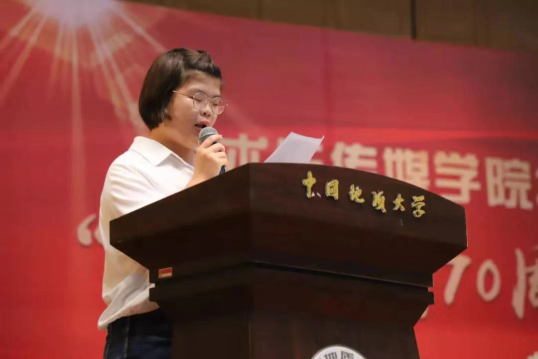 新生代表、音乐学2019级本科生王灶格满怀激情地讲述了自己从三晋大地来到江城武汉所感到的新奇以及自身对大学生活的憧憬与期待,代表全体新生发表了属于每个人的“青春宣言”。