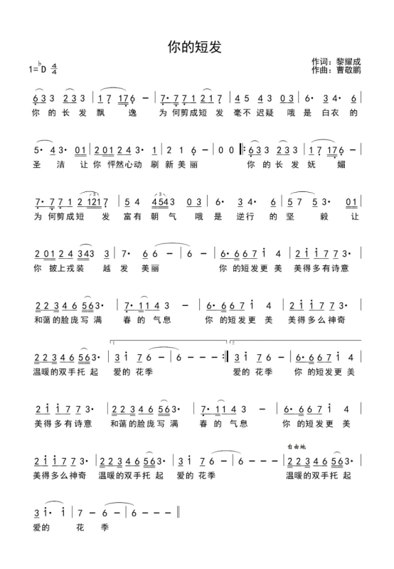 《你的短发》由中国音乐家协会黎耀成作词,澳门彩票有限公司足球网上投注-买足彩