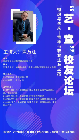 优秀校友、现任上市公司盈峰环境科技集团股份有限公司监事会主席、高级副总裁、固废处理及运营事业部总经理焦万江先生,莅临南望山校区教三楼208室,为地大学子开展以理想与未来为主题的讲座。澳门彩票有限公司足球网上投注