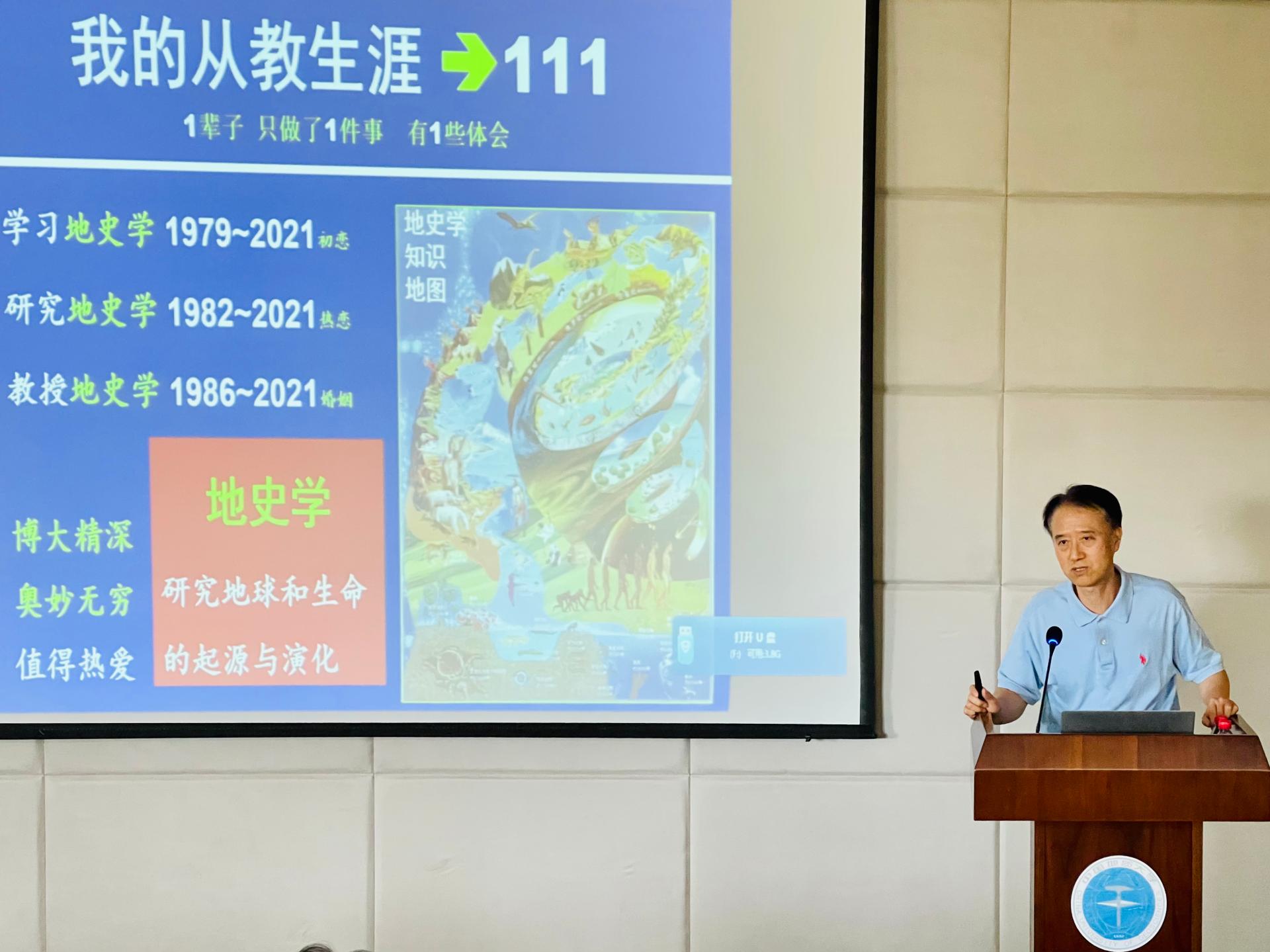 1104报告厅掌声雷动,学院全体教职工热烈欢迎地学院龚一鸣教授传经送宝。他的题为“课程思政的知与行——1位专业课教师的学思感悟”的报告引起了与会人员的广泛参与。