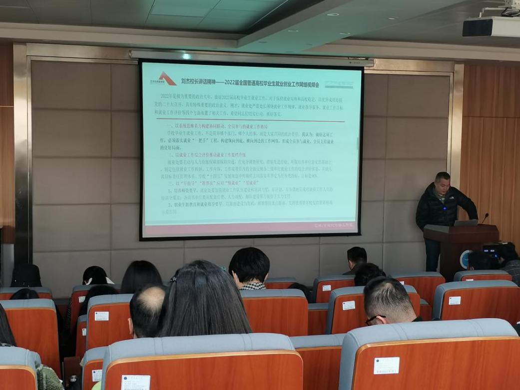 教职工消防安全培训会暨就业工作推进汇报会在艺媒楼1104报告厅顺利召开,学院全体教职工参加会议。